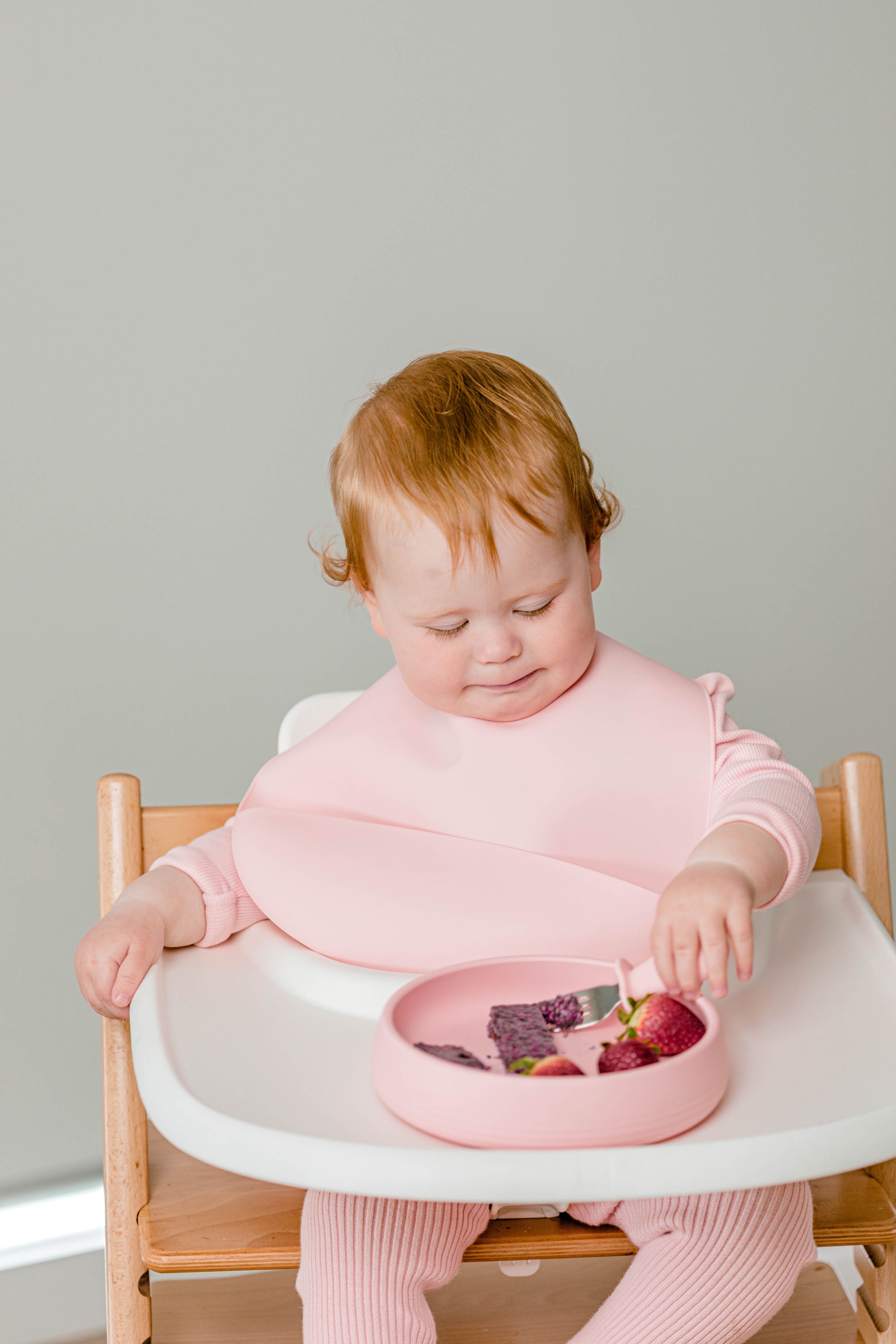Starting solids is messy — but your baby’s clothes don’t have to be. Our Full Coverage Silicone Bib is designed to protect more than just the neckline, offering wider shoulder coverage and a deep catch pocket that actually stays open to trap spills before they hit the floor.